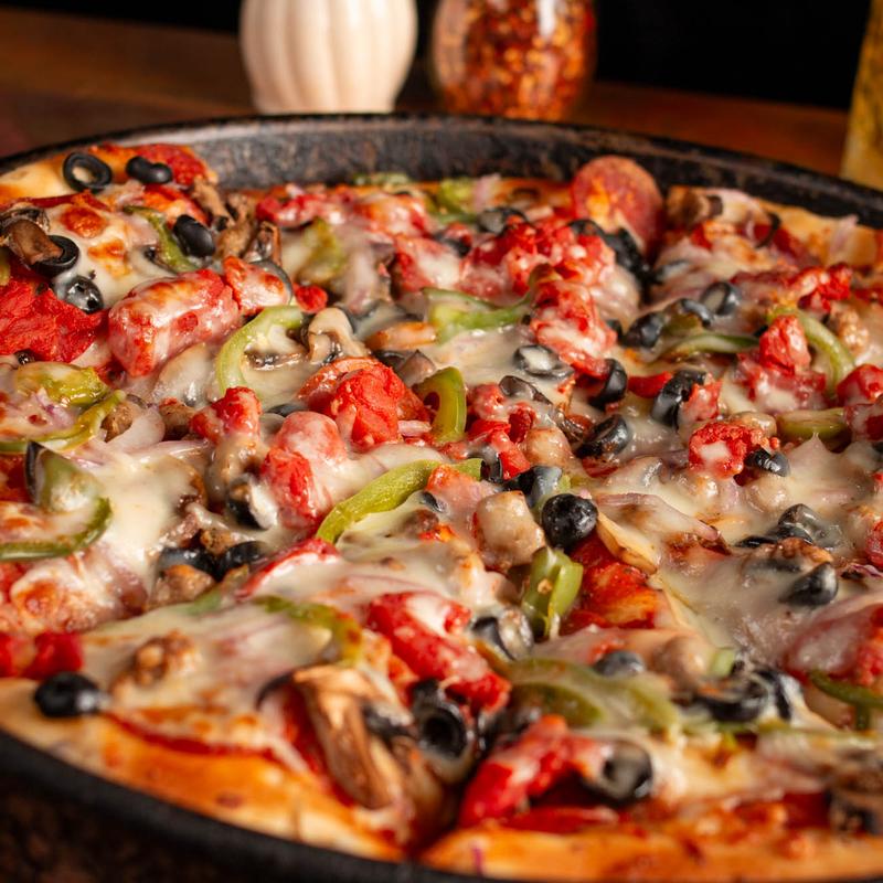 Pizza toppings: Pepperoni | Chicken Breast | Artichoke Hearts | Italian Sausage | Mushrooms | Green Onions | Red Onions | Pepperoncini Peppers | Meatballs | Fresh Garlic | Bacon | Canadian-Style Bacon | Green Peppers | Ham | Black Olives | Fresh Spinach | Genoa Salami | Pineapple | Feta Cheese | Anchovies | Fresh Roma Tomatoes | Extra Cheese | Jalapeño Peppers | Mandarin Oranges | Fresh Basil